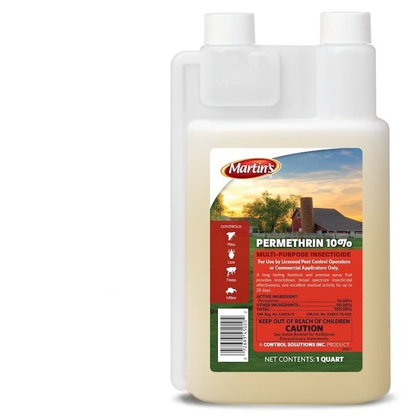Durvent Permethrin 10% concentrate is a long-lasting water-based livestock and premise spray that provides knockdown, broad spectrum insecticidal effectiveness, and excellent residual activity for up to 28 days. Kills flies, face flies, horn flies, stable flies, house flies, lice, fleas, ticks, mites, ants and mosquitoes. Use sites: indoor, outdoor, lawns, horses, swine, cattle, cows, beef, dairy, animal housing, barns, kennels, yards, dairies, stables, sheep, goats, pigs, poultry, chickens, misting, dogs, pour on, backrubber.