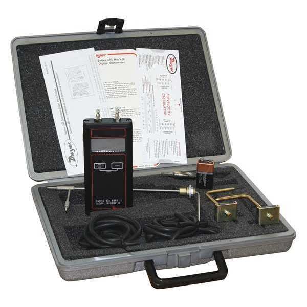 Air Manometer Kit, Maximum Pressure 40 in wc, Minimum Pressure 0 in wc, Pressure Accuracy +/-0.5 Percent of Full Scale, Process Connection Size 1/8 in, 3/16 in, Process Connection Type Hose Barb, Includes Batteries Batteries Included, Digital Display Features 4 Digit LED, Series 475, Pressure Units in wc, Air Velocity Accuracy +/-0.50 Percent of Full Scale, Alarm No, Application Natural Gas; Air, Auto Power Off Yes, Batteries Required Yes, Battery Type 9V, Calibration Certificate Included No