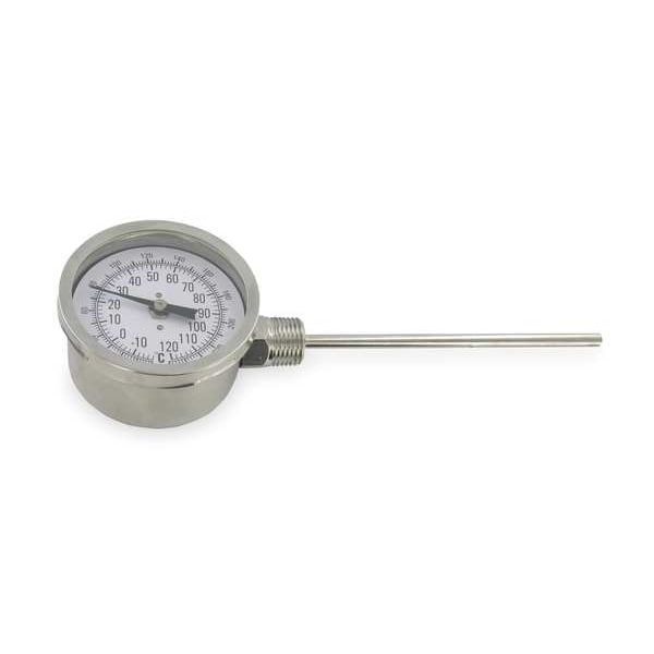 Bimetal thermometer, 6" stem, range 0 to 250 Degrees F/-20 to 120 Degrees C.
