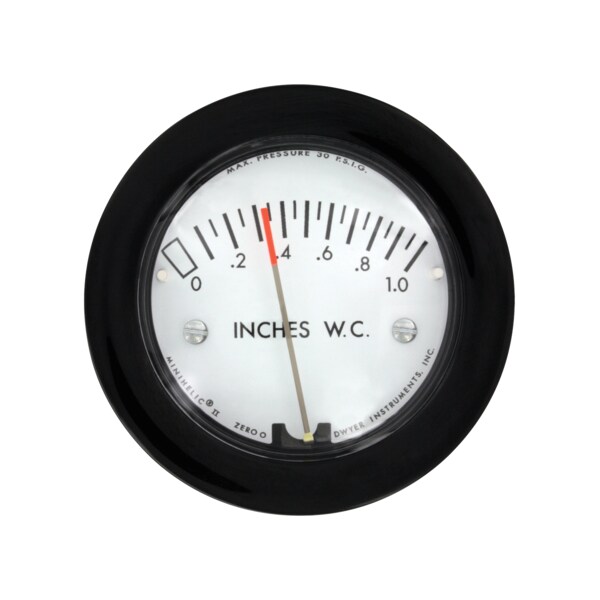 Differential pressure gage, range 0-0.5" w.c., 1/8" male NPT connection.