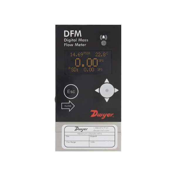 Digital flow meter, 0-5 l/min with LED display, 1/8in compression fittings, 0-5 VDC output, RS-232 digital interface, RS-485selectable.