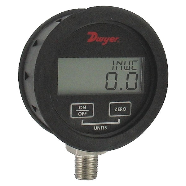 Digital pressure gage w/ boot, range -15-0 psi with 4-digit display, +/-0.5% accuracy, battery powered.