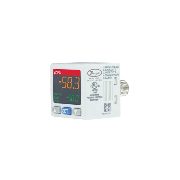Pressure controller, range -14.5 psi to 145 psi, PNP output, 4 to 20 mA, outer connection 1/8in PT, inner connection M5.