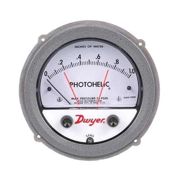 Pressure switch/gage, range 0-10" w.c., .20 minor divisions.