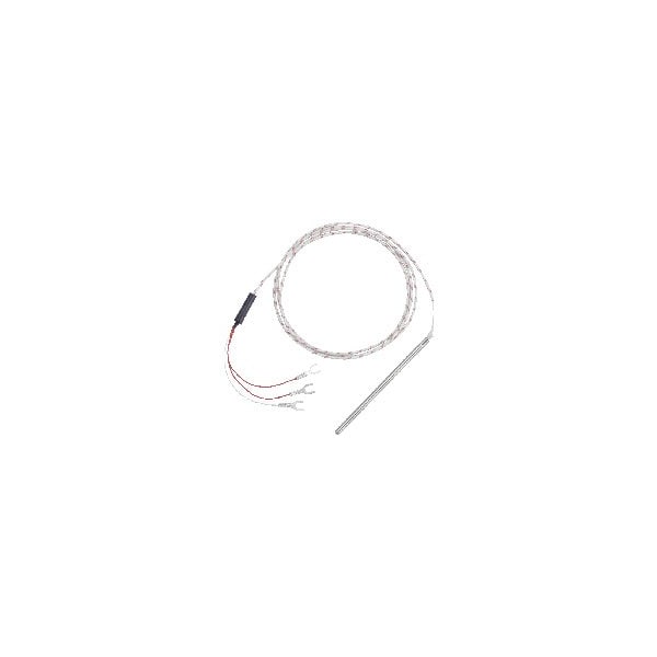 Stainless steel overbraid extension type J thermocouple, 0 Degree bend, No 6 spade terminal.