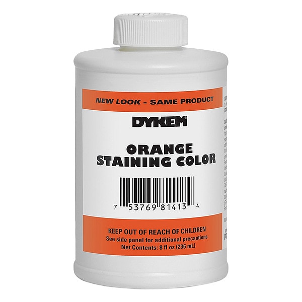 Staining Color, Container Size 8 fl oz, Brush Cap Bottle, Liquid, Orange, Application Permanent Identification on a Variety of Component Parts, Assemblies, Finished Goods, Inventory, Tools, Work in Progress, Features Fast Drying, For Light and Dark Tinted Metals, Resists Chipping, Flaking or Scaling, Resists Cracking, Flash Point 24 Degrees F, Fluid Clarity Opaque, Form Liquid