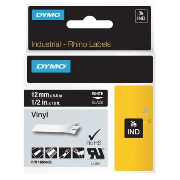 Combined Label and Ribbon Cartridge, Compatible Grainger Part Number 13A913, 23M342, 4NHN1, 51VM58, Compatible Mfr Part Number 1754488, 1768960, 1801611, 1815990, Label Color Black, Label Finish Gloss, Label Height Not Applicable, Label Material Vinyl, Label Width 1/2 in, Material Properties Halogen-Free, Printer Series Compatibility Rhino 1000, Rhino 3000, Rhino 4200, Rhino 5000, Rhino 5200, Rhino 6000, Rhino 6500, Ribbon Color White, Roll Length 18 ft, Vial/Tube Size Not Applicable