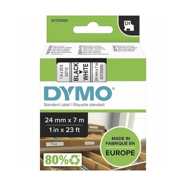Dymo Label Tape,f/DYMO Labelmakers,1''x23',Black/White CARTRIDGE,TAPE,1'',BLACK/WHITE