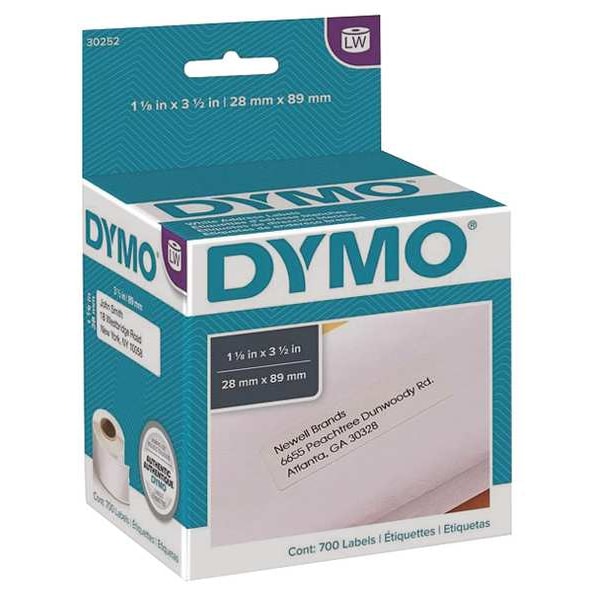 Printer Label, 1 1/8 in Label W, 3 1/2 in Label H, 350 Labels per Roll, White