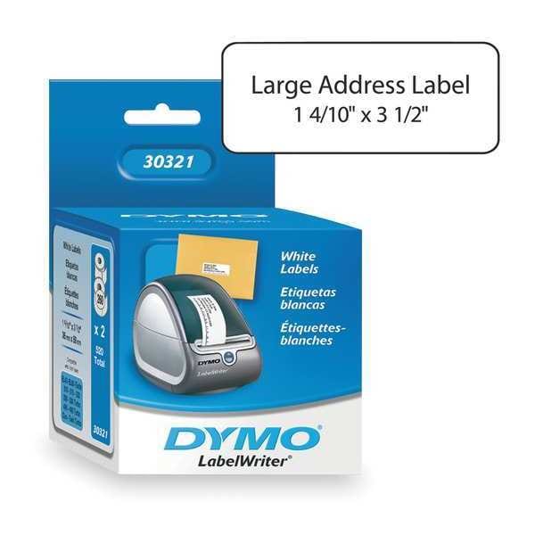 Printer Label, 1 3/8 in Label W, 3 1/2 in Label H, 260 Labels per Roll, White