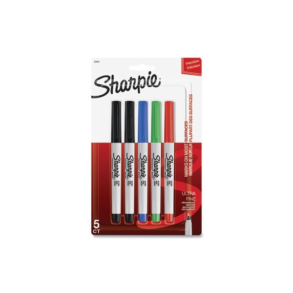 Sharpie, ULTRA FINE TIP PERMANENT MARKER, EXTRA-FINE NEEDLE TIP, ASSORTED COLORS, 5 Pieces