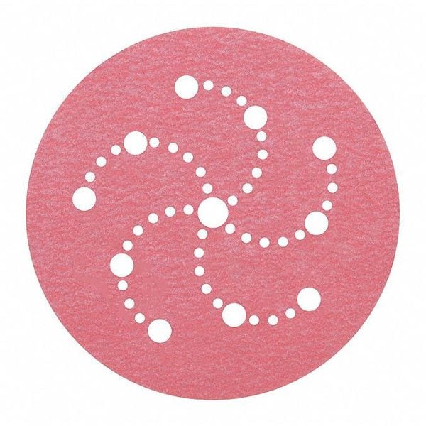 Hook and Loop Disc, 5", Vac, 100G, 5" Dia, Multi-Hole, Aluminum Oxide, 100 Grit, Coated Type