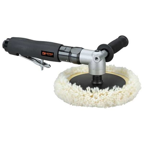 Air Polisher, Product Type Air Polisher, Polishing Motion Rotary, Included Pad Sizes 8 in, Minimum Disc Diameter 8 in, Maximum Disc Diameter 8 in, Abrasive Mount Type Hook and Loop, Horsepower 1 hp, Duty Heavy, Grip Type Right Angle with Side Handle, Speed Settings Fixed, Maximum Motor Speed 2,800 RPM, Air Consumption 42 cfm, Required Pressure 90 psi, Air Inlet Size 3/8 in, Air Inlet Type NPT, Minimum Hose Size 3/8 in, Spindle Thread Size M14x2, Exhaust Location Rear, Tool Length 12 1/2 in