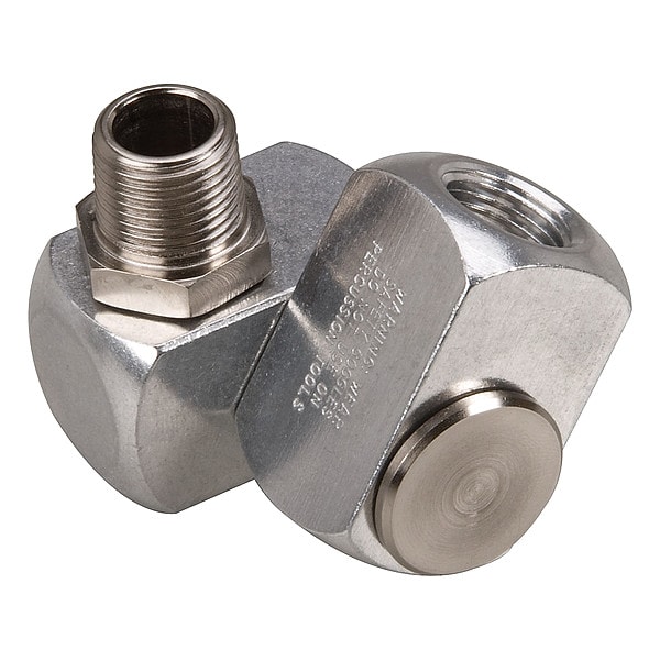 Swivel Connector, Fitting Material Aluminum, Fitting Material Finish Nickel-Plated, Fitting Material Grade 1215 CR, Includes Pre-Applied Thread Sealant No, Inlet Connection Gender Male, Inlet Connection Size 3/8 in, Inlet Connection Type NPT, Number of Pivot Points 2, Outlet Connection Gender Female, Outlet Connection Size 3/8 in, Outlet Connection Type NPT, Seal Material Buna-N, Swivel Angle 360 Degrees , For Use On Air Tools, Overall Length 2.5 in