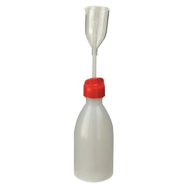 Dispensing Bottle, Body Color Clear, Body Material LDPE, Body Diameter - Metric 60 mm, Capacity - Metric 250 mL, Capacity - English 8.45 fl oz, Overall Height - Metric 298 mm, Clarity Translucent, Closure Included Yes, Closure Color Red, Mouth Size Narrow, Autoclavable No, Graduated Yes, Sterile/Non-Sterile Non-Sterile, Pre-Cleaned None, Graduation Increments - Metric 1 mL, Special Features LDPE Adjustable Volume Bottles with a PMP Dispenser Cup, Suitable for Foodstuff, Shape Round