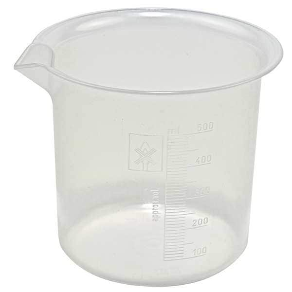 Beaker, Capacity - Metric 500 mL, Capacity - English 16.91 fl oz, Product Type Beaker, Beaker Type Low Form, Outside Diameter - Metric 87 mm, Overall Height - Metric 119 mm, Body Material Polypropylene, Includes Graduations Yes, Glassware Class Not Rated, Graduation Increments - Metric 10 mL, Autoclavable Yes, USP Specification Not Applicable, Basic Material Plastic, Special Features Chemical-Resistant, Shatter Resistant, Disposable/Reusable Reusable, Sterile/Non-Sterile Non-Sterile