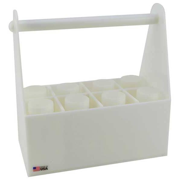 Bottle Carrier, For Use With 500mL Bottle, Number of Compartments 8, Material HDPP, Color White, Width 8 in, Length 14 1/2 in, Includes Not Applicable, Container Height 6 in, Overall Height 15 1/4 in