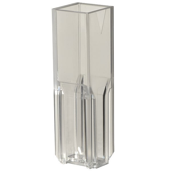 Cuvette, VIS, Body Material Polystyrene, Maximum Fill Volume 0.003 mL, Minimum Fill Volume 3 mL, Maximum Bandwidth 900 nm, Minimum Bandwidth 340 nm, Path Length 10 mm, Basic Material Plastic, Overall Depth - Metric 12.5 mm, Overall Height - Metric 45 mm, Overall Width - Metric 12.5 mm, Standards FDA, REACH, RoHS, Package Quantity 500
