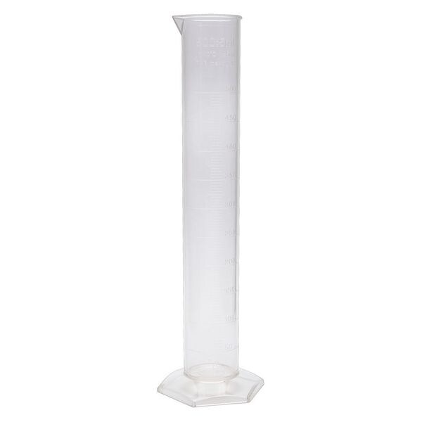 Graduated Cylinder, Capacity - Metric 500 mL, Capacity - English 16.9 fl oz, Graduation Increments - Metric 5 mL, Graduation Increments - English 0.16 oz, Maximum Graduation - Metric 500 mL, Minimum Graduation - Metric 50 mL, Body Diameter - Metric 55 mm, Autoclavable Yes, Body Color Clear, Clarity Transparent, USP Specification Not Applicable, Glassware Class B, Sterile/Non-Sterile Non-Sterile, Volumetric Calibration To Contain (TC), ASTM Specification Not Applicable, Basic Material Plastic