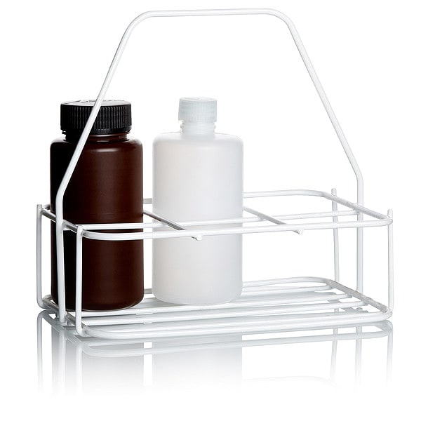 NFR Wash Bottle Carrier, For Use With Squeeze Bottles, Number of Compartments 3, Material Polyamide Coated Steel, Color White, Width 4 3/4 in, Length 4 3/4 in, Includes Not Applicable, Overall Height 10 in