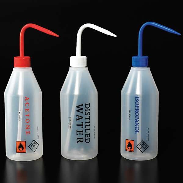 Wash Bottle, Capacity - Metric 500 mL, Imprinting Distilled Water, Capacity - English 16.9 fl oz, Basic Material Plastic, Body Material LDPE, Vented/Nonvented Nonvented, Closure Material Polypropylene, Spout Style Standard Spout, Product Type Wash Bottle, Body Color Clear, Body Diameter 64 mm, Closure Color White, Autoclavable No, Closure Included Yes, Mouth Size Narrow, Clarity Transparent, Closure Style Swivel, Numbers of Bottles Included 5, Standards Not Applicable, Package Quantity 5