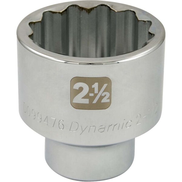 Size: 2-1/2". Drive Type: 12 Point. 1" Drive. Chrome finish for maximum resistance against corrosion. Large laser etched markings improve size identification and provide differentiation between SAE and metric sizes. Brand, part number and size also hard stamped. Meets ANSI standards.
