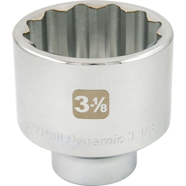 Size: 3-1/8". Drive Type: 12 Point. 1" Drive. Chrome finish for maximum resistance against corrosion. Large laser etched markings improve size identification and provide differentiation between SAE and metric sizes. Brand, part number and size also hard stamped. Meets ANSI standards.
