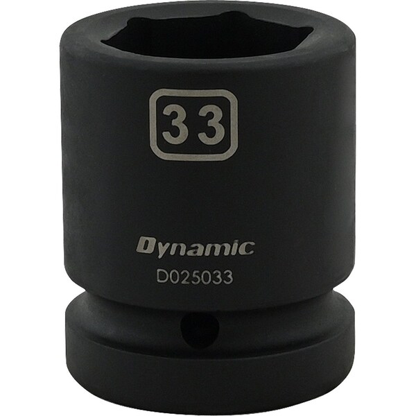 Size: 33mm. 1" Drive. Drive Type: 6 Point. Corrosion resistant black phosphate finish. Large laser etched markings improve size identification and provide differentiation between SAE and metric sizes. Meets ANSI standards.
