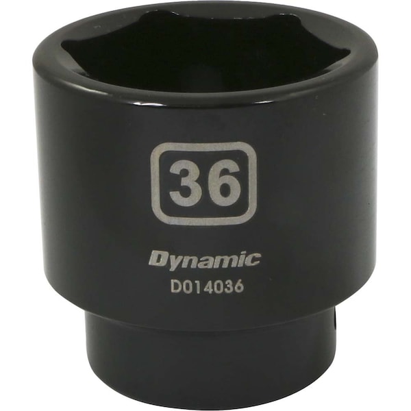 Size: 36mm. Drive Type: 6 Point. 1/2" Drive. Corrosion resistant black phosphate finish. Large laser etched markings improve size identification and provide differentiation between SAE and metric sizes. Meets ANSI standards.