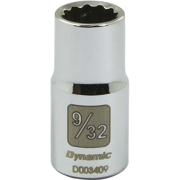 Size: 9/32". Drive Type: 12 Point. 1/4" Drive. Chrome finish for maximum resistance against corrosion. Large laser etched markings improve size identification and provide differentiation between SAE and metric sizes. Meets ANSI standards.