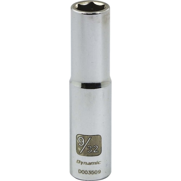 Size: 9/32". Drive Type: 6 Point. 1/4" Drive. Chrome finish for maximum resistance against corrosion. Large laser etched markings improve size identification and provide differentiation between SAE and metric sizes. Meets ANSI standards.