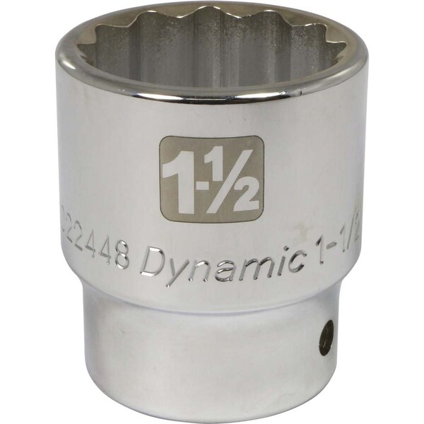 Size: 1-1/2". Drive Type: 12 Point. 3/4" Drive. Chrome finish for maximum resistance against corrosion. Large laser etched markings improve size identification and provide differentiation between SAE and metric sizes. Knurled ring provides superior grip for quicker and easier removal of socket from ratchets and attachments. Brand, part number and size also hard stamped. Meets ANSI standards.