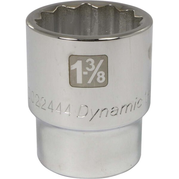 Size: 1-3/8". Drive Type: 12 Point. 3/4" Drive. Chrome finish for maximum resistance against corrosion. Large laser etched markings improve size identification and provide differentiation between SAE and metric sizes. Knurled ring provides superior grip for quicker and easier removal of socket from ratchets and attachments. Brand, part number and size also hard stamped. Meets ANSI standards.