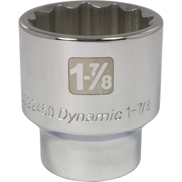Size: 1-7/8". Drive Type: 12 Point. 3/4" Drive. Chrome finish for maximum resistance against corrosion. Large laser etched markings improve size identification and provide differentiation between SAE and metric sizes. Knurled ring provides superior grip for quicker and easier removal of socket from ratchets and attachments. Brand, part number and size also hard stamped. Meets ANSI standards.