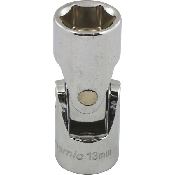Size: 13mm. Drive Type: 6 Point. 3/8" Drive. Chrome finish for maximum resistance against corrosion. 360 articulation for access to fasteners in confined spaces. Meets ANSI standards.