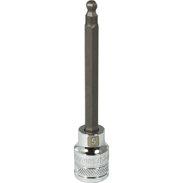 Size: 5mm. Bit length (inches): 2.60. Chrome finish for maximum resistance against corrosion. Laser etched markings improve size identification and provide differentiation between SAE and metric sizes. Brand, part number and size also hard stamped. Knurled ring provides superior grip for quicker and easier removal of socket from ratchets and attachments. Meets ANSI standards.
