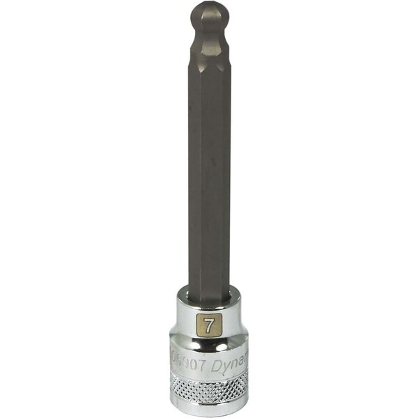 Size: 7mm. Bit length (inches): 2.60. Chrome finish for maximum resistance against corrosion. Laser etched markings improve size identification and provide differentiation between SAE and metric sizes. Brand, part number and size also hard stamped. Knurled ring provides superior grip for quicker and easier removal of socket from ratchets and attachments. Meets ANSI standards.