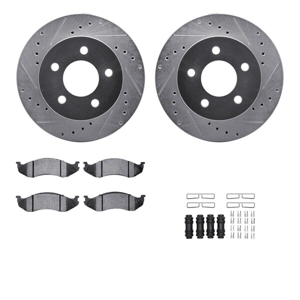 7512-56041, Rotors-Drilled and Slotted-Silver w/ 5000 Advanced Brake Pads incl. Hardware, Zinc Coat (Discontinued)