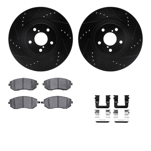 DFC Brake Rotor - Dimpled & Slotted - Black w/5000 Brake Pads & HW Kit