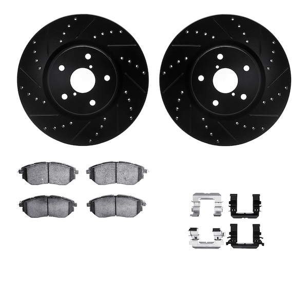DFC Brake Rotor - Dimpled & Slotted - Black w/5000 Brake Pads & HW Kit