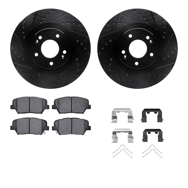 DFC Brake Rotor - Dimpled & Slotted - Black w/5000 Brake Pads & HW Kit