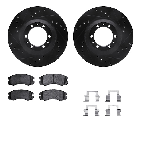 DFC Brake Rotor - Dimpled & Slotted - Black w/5000 Brake Pads & HW Kit