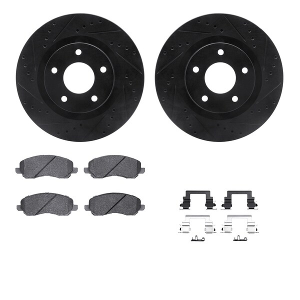 DFC Brake Rotor - Dimpled & Slotted - Black w/5000 Brake Pads & HW Kit