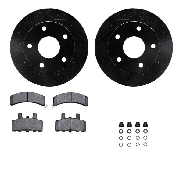DFC Brake Rotor - Dimpled & Slotted - Black w/5000 Brake Pads & HW Kit