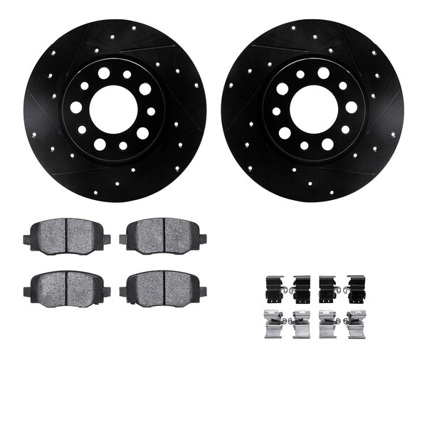 DFC Brake Rotor - Dimpled & Slotted - Black w/5000 Brake Pads & HW Kit