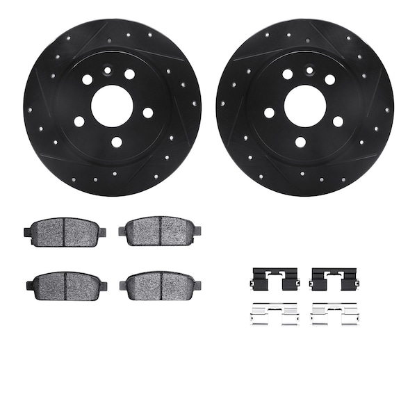 DFC Brake Rotor - Dimpled & Slotted - Black w/5000 Brake Pads & HW Kit