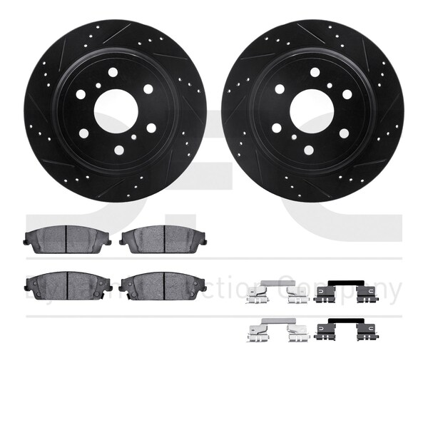 DFC Brake Rotor - Dimpled & Slotted - Black w/5000 Brake Pads & HW Kit