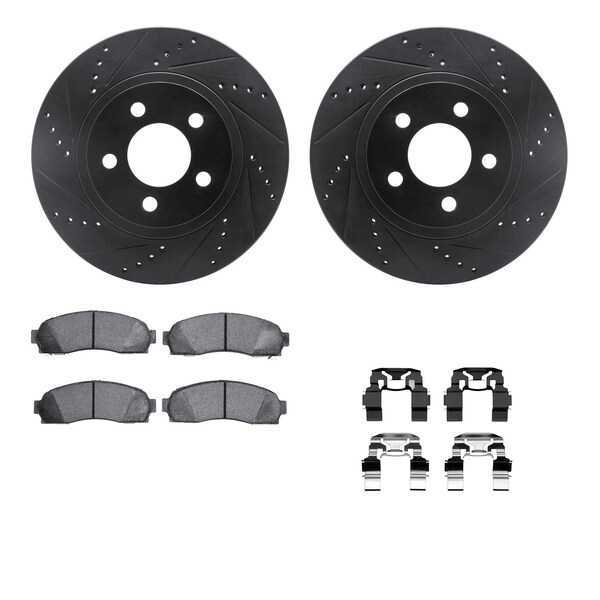 DFC Brake Rotor - Dimpled & Slotted - Black w/5000 Brake Pads & HW Kit