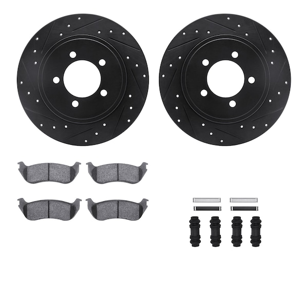 DFC Brake Rotor - Dimpled & Slotted - Black w/5000 Brake Pads & HW Kit