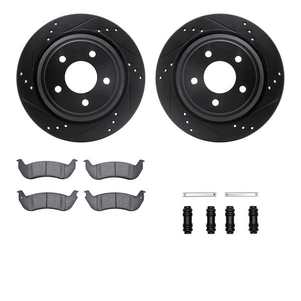 DFC Brake Rotor - Dimpled & Slotted - Black w/5000 Brake Pads & HW Kit